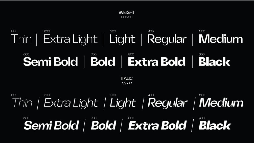 The font family comes with nine different weights, ranging from the thin regular to the Black.