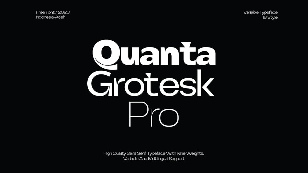 Quanta Groteks Pro is a modern and versatile variable font designed to meet the needs of contemporary typography.