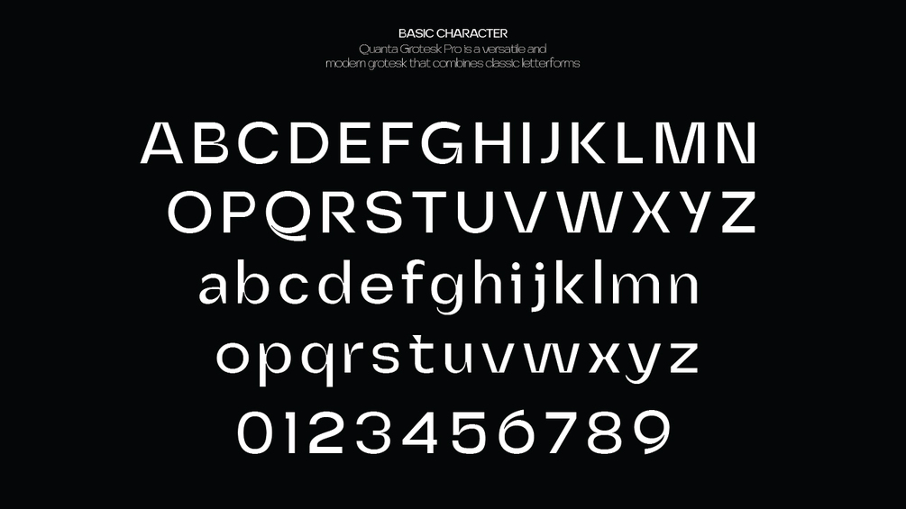 from branding and advertising to editorial and Product design. Quanta Groteks Pro is available for both commercial and personal projects,